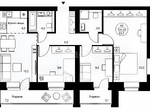 3-комнатная квартира, 83.7 м2