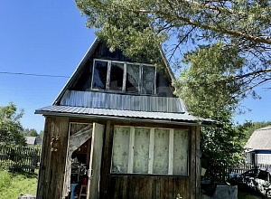 Хоз. постройки: сарай, 4*2 метра, из блок-хауса, кровля из проф. листа, есть электричество, освящение, розетки, металлическая дверь, окно из пластикового стеклопакета.