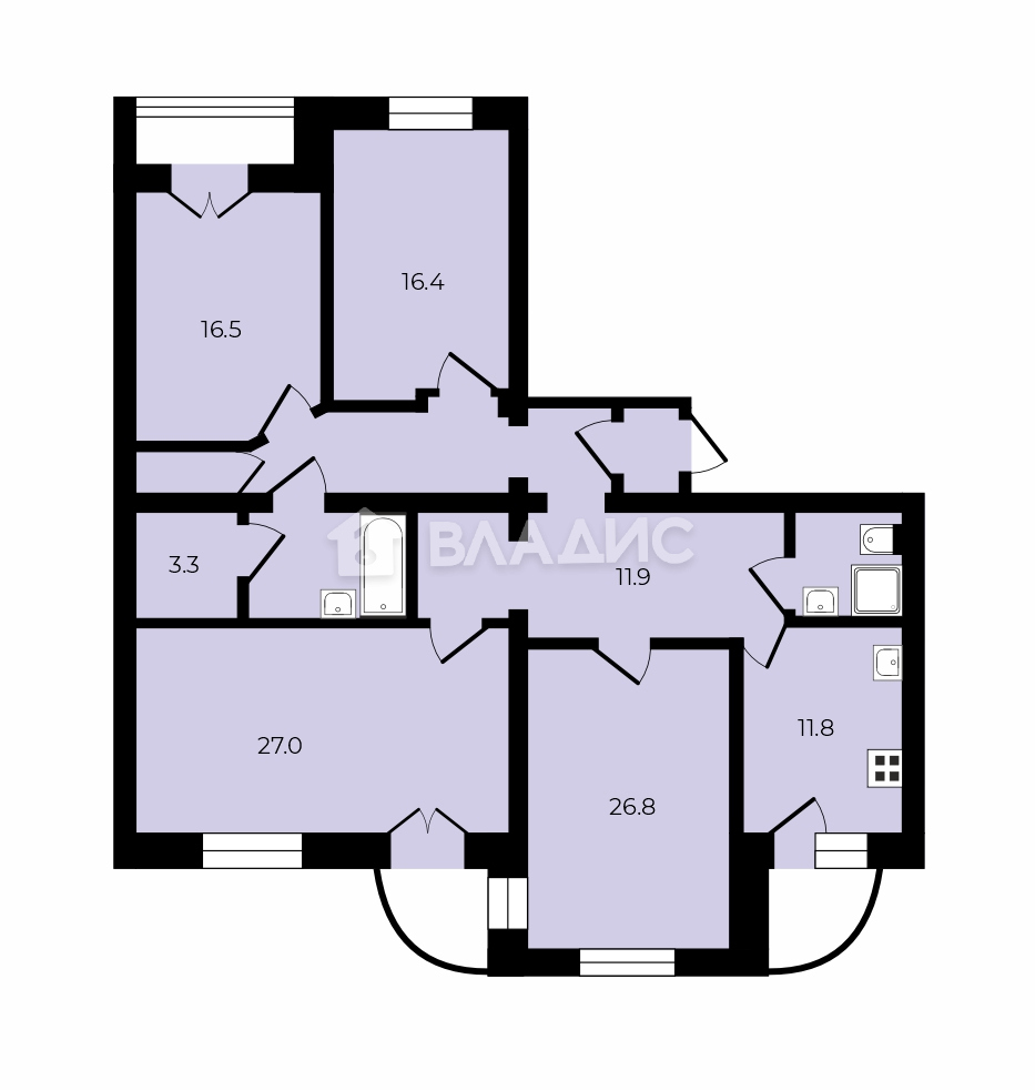 Площадь кухни: 11,8 кв. м.