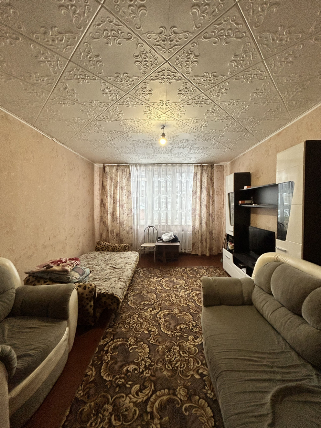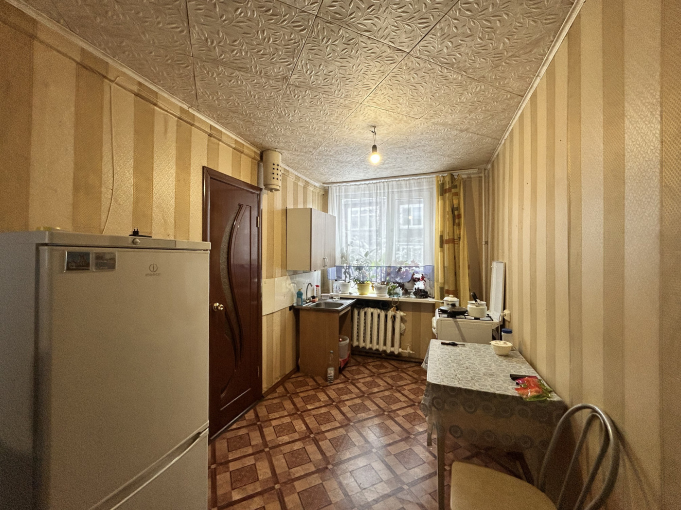 Планировка: кухня 9м2, комната, сан узел совмещенный.