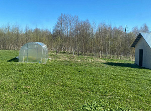 На участке есть колодец и маленький домик, который можно использовать.